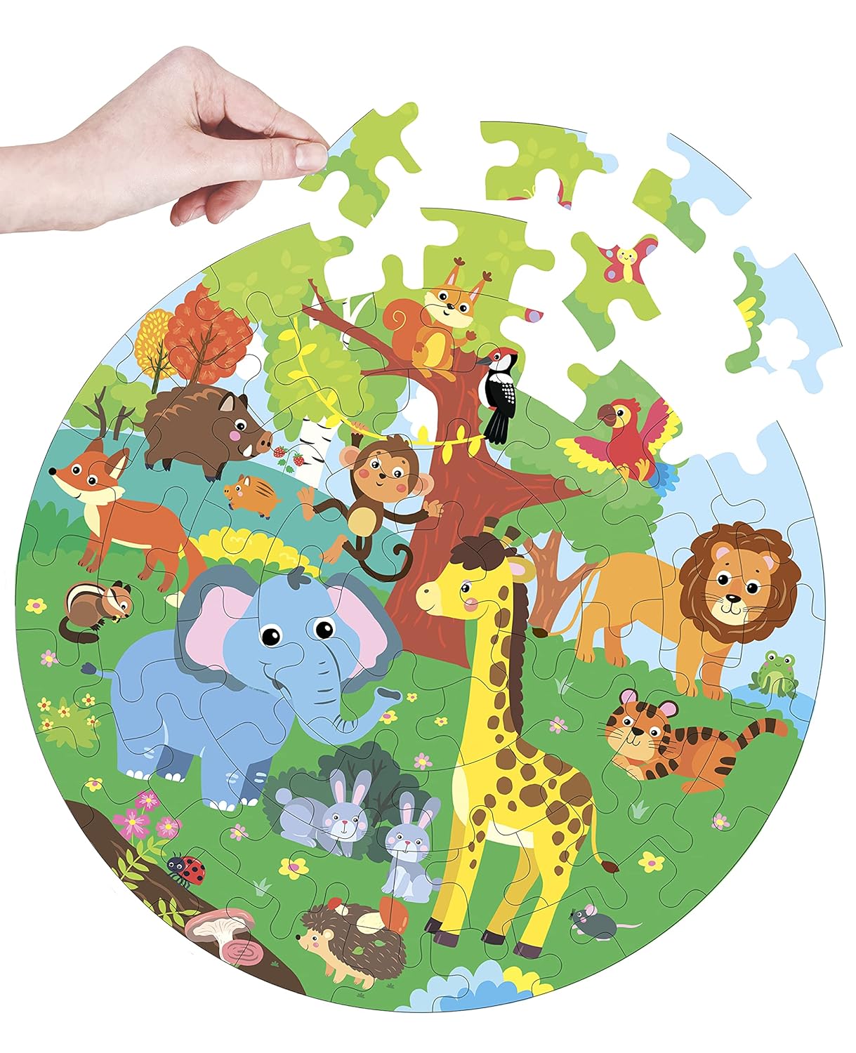 Fiddlys Creative Wooden Jigsaw Puzzle for Kids | 66 Pieces Educational Single Layer Puzzle | Fun & Learning Toy for Children Ages 3+ (Animal World)