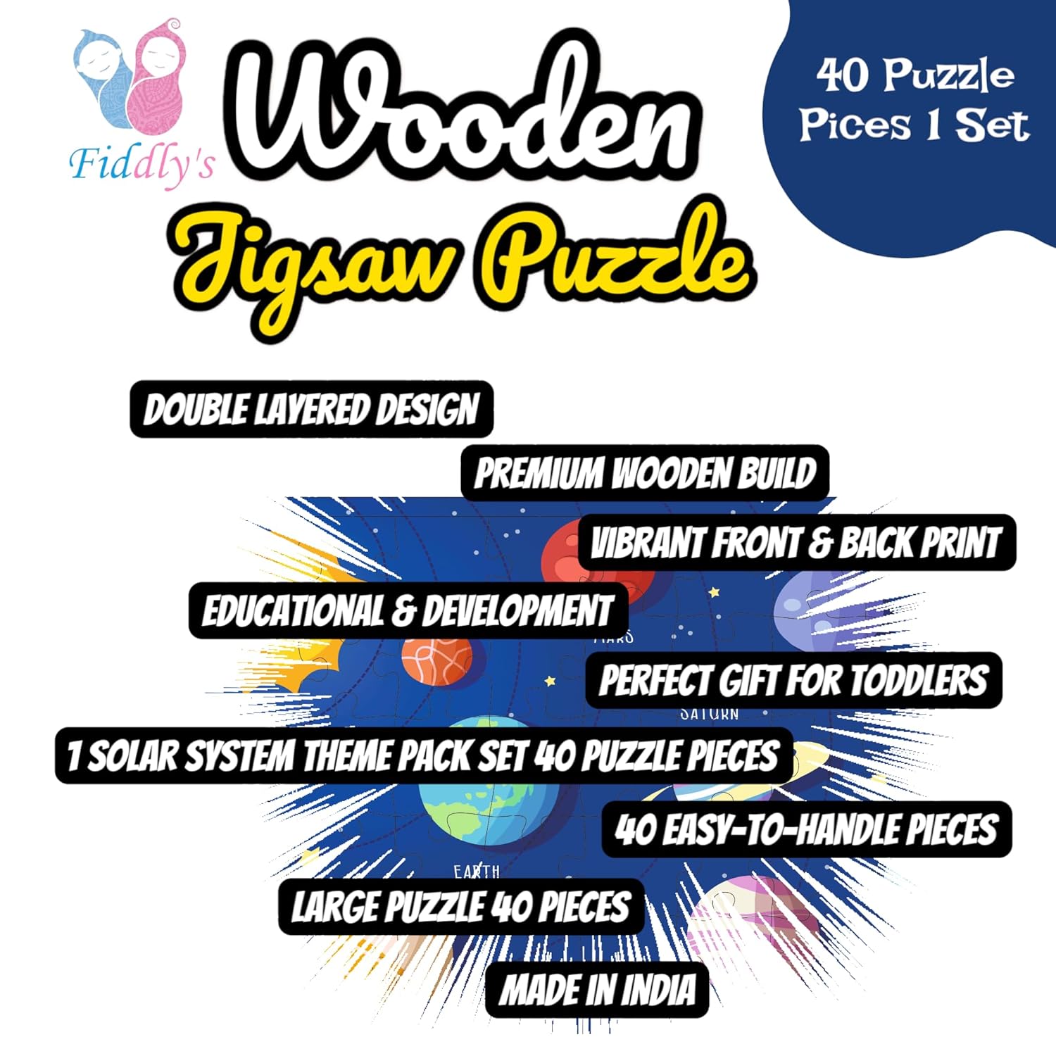 Fiddlys 40 Pcs Wooden Jigsaw Puzzle is a fun, paperless and eco-friendly learning toy for children aged 4 years and above. Crafted from premium quality wood, this puzzle is double layered and features bright front & back prints, ensuring that it stays vibrant even after repeated use.
