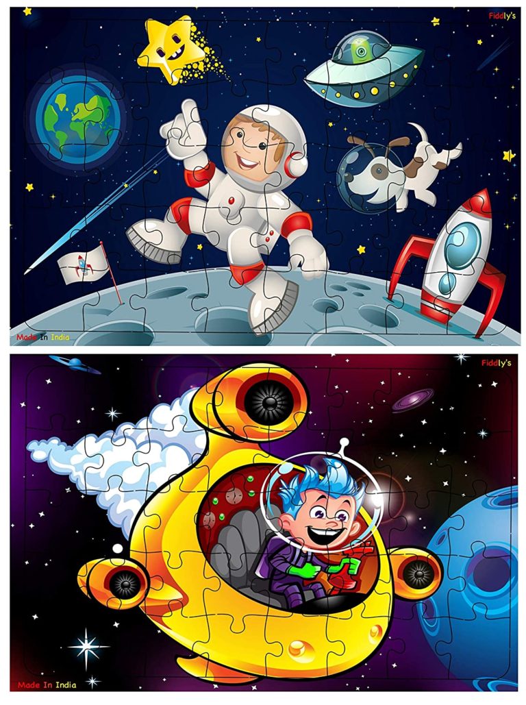 40 pieces of a special shape jigsaw puzzle can help children develop early cognitive ability, attention, observation, problem-solving skills, hand-eye-brain coordination & logical thinking. Completing a puzzle is a great collaborative activity for family & friends. Kids and adults of all ages can exercise their patience, concentration, observation, and intelligence. This kids puzzle for 1-year-old fits perfectly into small hands and is not too large to be swallowed, making it a safe and ideal activity for all young kids. Great colorful puzzle to stimulate Kid’s interests in planets, space exploration, science & astronomy.