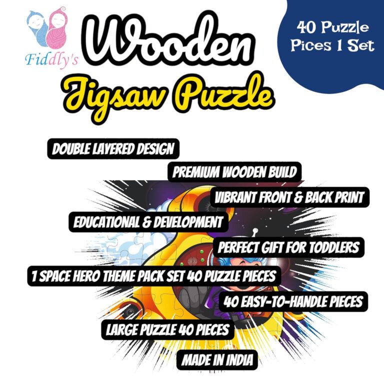 Fiddlys 40 Pcs Wooden Jigsaw Puzzle is a fun, paperless and eco-friendly learning toy for children aged 4 years and above. Crafted from premium quality wood, this puzzle is double layered and features bright front & back prints, ensuring that it stays vibrant even after repeated use.