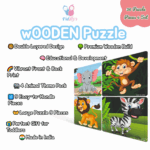 Make learning fun with Fiddlys Wooden Jigsaw Puzzles – Pack of 4 Animals (9 pieces each)! Specially designed for kids age 3+, these puzzles feature bright animal designs that spark curiosity and imagination. Each puzzle is crafted from double-layered durable wood with vivid prints on both front and back, ensuring hours of fun while promoting brain development. These puzzles are not just toys—they help children develop problem-solving skills, hand-eye coordination, memory, and logical thinking. Safe, eco-friendly, and built for little hands, they make a perfect choice for early learning and gifting.