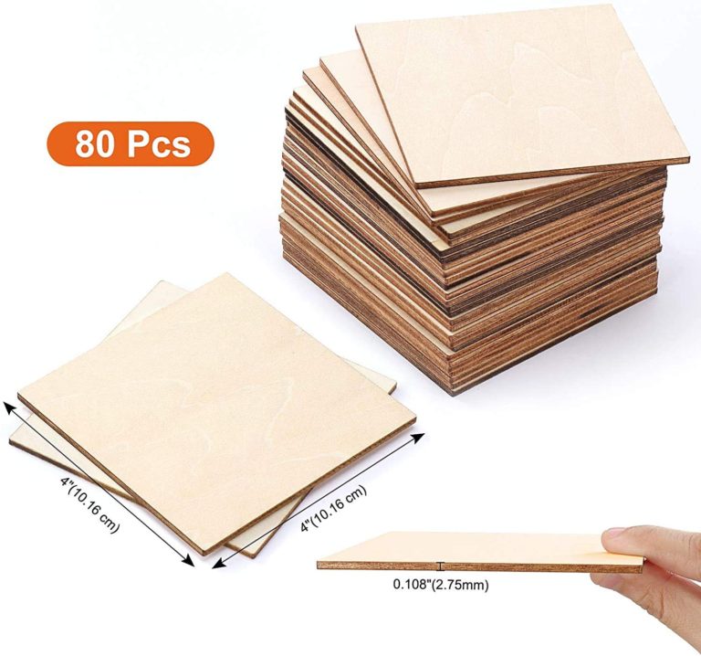 - 80Pcs Wood Pieces Set – The set includes 80 pieces 4-by-4 inch unfinished square wood slices. Great value set, enough for most DIY crafts projects.