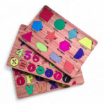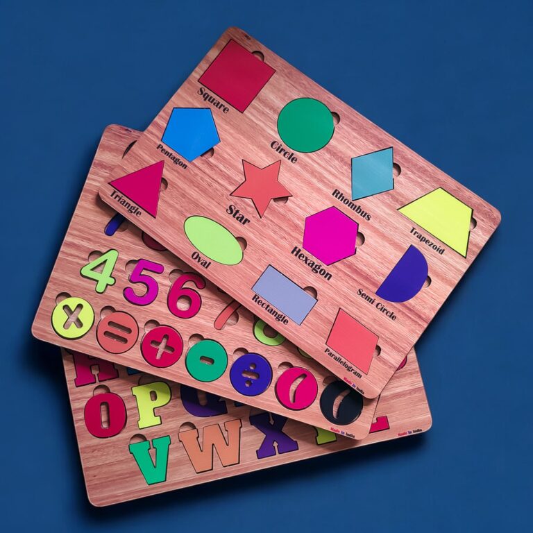 🔤 Learn Alphabets, Numbers & Shapes – 3-in-1 wooden puzzle set for complete early learning.