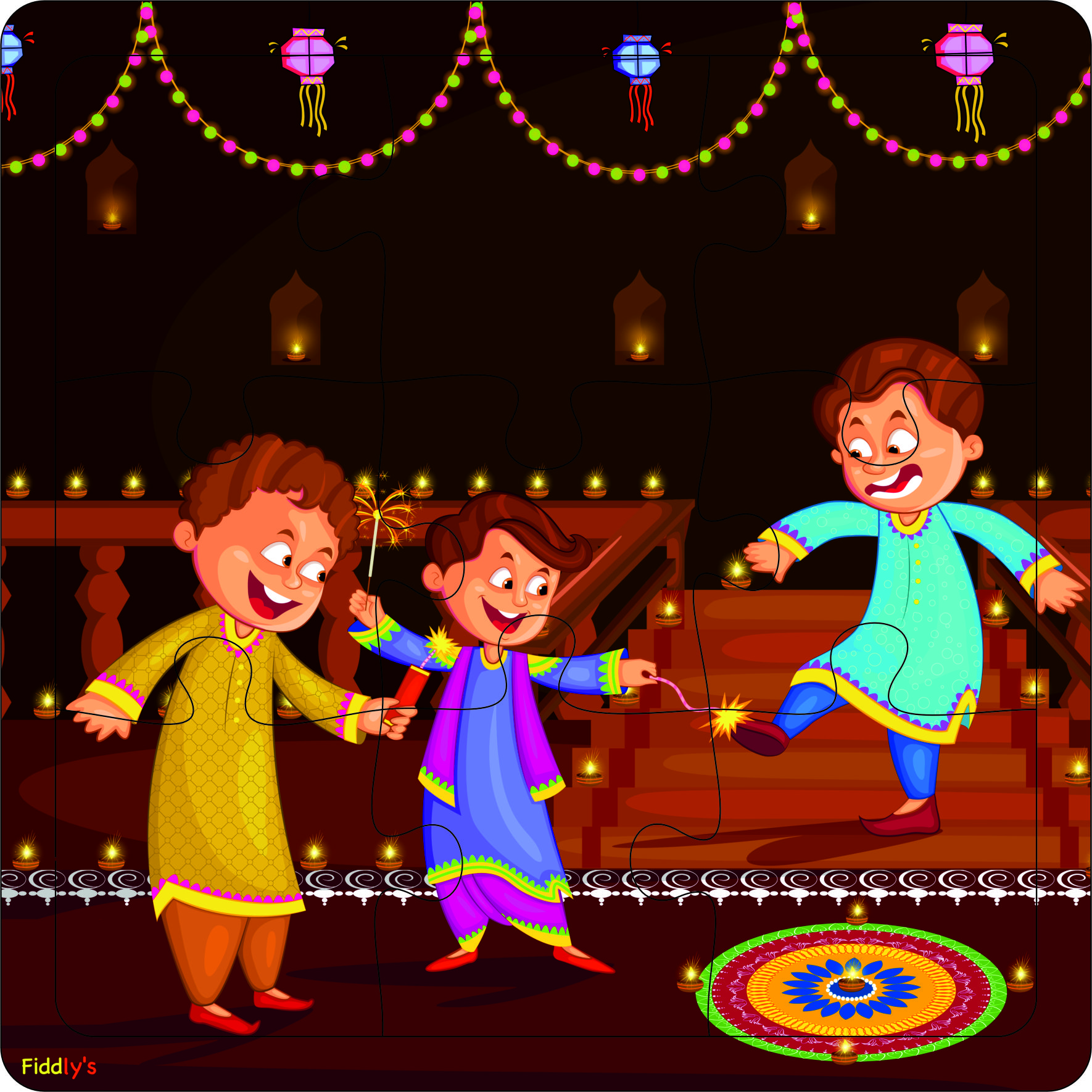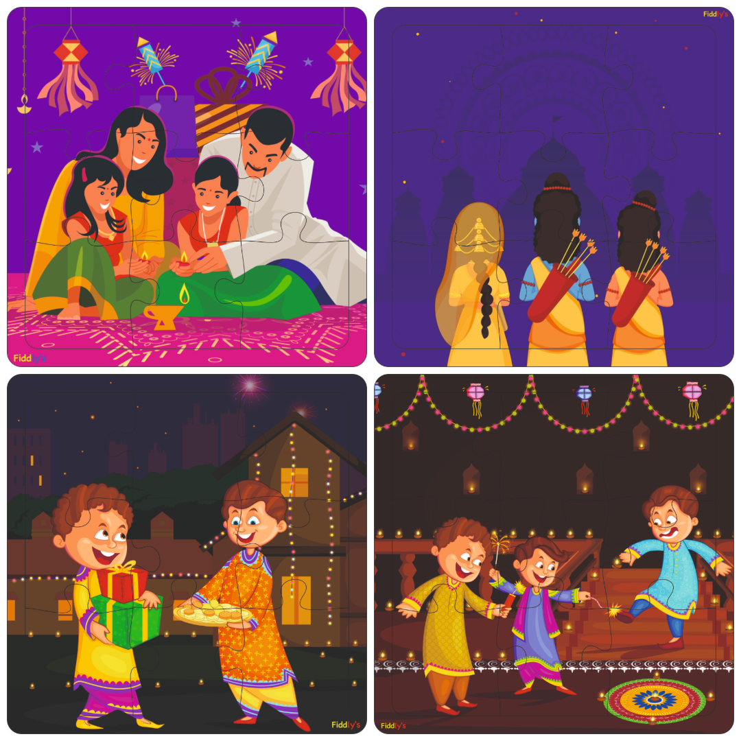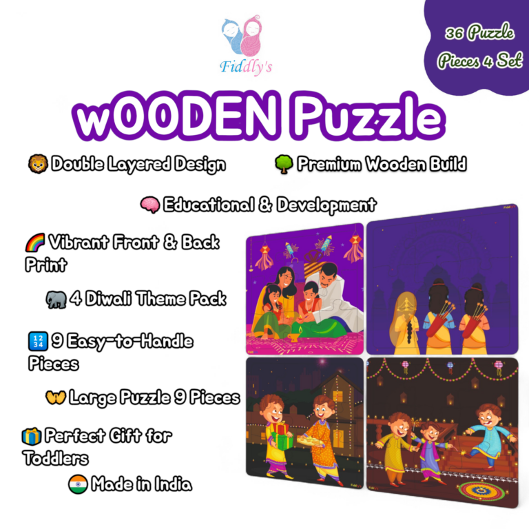 Step into the world of dinosaurs with Fiddlys Wooden Jigsaw Puzzles – Pack of 4 Diwali (9 pieces each)! Specially designed for kids age 3+, these puzzles feature exciting dinosaur designs that spark curiosity and imagination. Crafted from double-layered durable wood with bright front & back prints, they are built to last and provide double the fun. These puzzles are more than just toys – they encourage children to develop problem-solving ability, memory, focus, and motor skills while enjoying playtime. Perfect for early learning, gifting, or preschool activities.