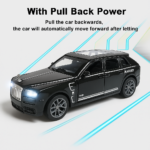 The Flyers Bay 1:32 Scale DieCast Metal Pull-Back Action Openable Doors Lights and Music Rolls-Royce Cullinan Premium Car Toy for Kids Realistic Miniature Model Gift 2+yrs Girls Boys (Black)