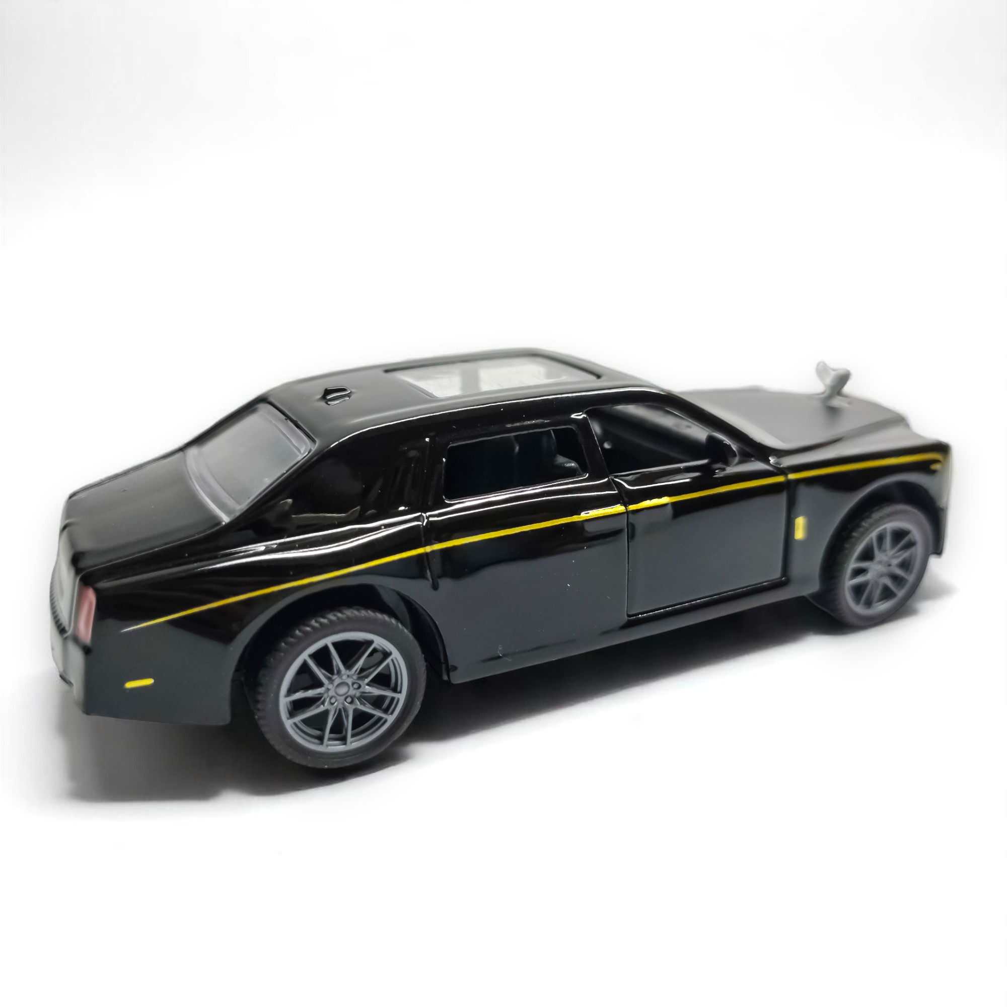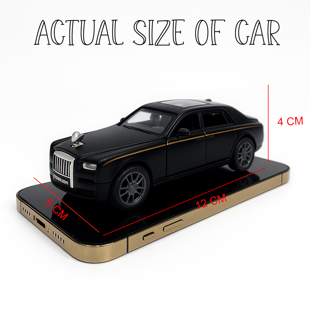 The Flyers Bay 1:32 Scale DieCast Metal Pull-Back Action Openable Doors, Lights and Music Rolls-Royce Phantom Premium Car Toy for Kids Realistic Miniature Model Gift 2+yrs Girls Boys Available (Black)