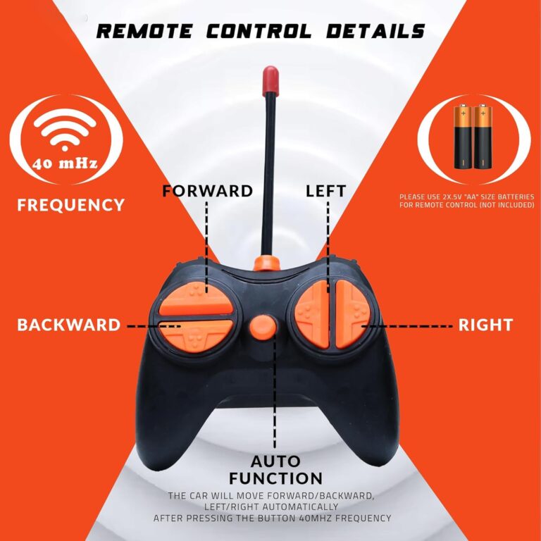 - BATTERIES: This car is equipped with high-capacity, rechargeable batteries that offer an impressive runtime of 25-30 minutes on a single charge. Following a complete recharge, it extends the playtime to a generous 30-40 minutes. It operates using 2xAA batteries for the Remote Controller (not included), providing the flexibility to play anytime, anywhere.