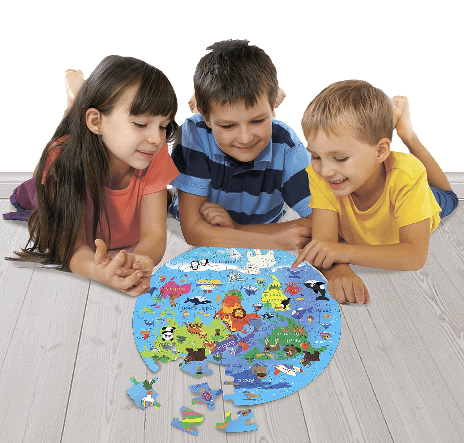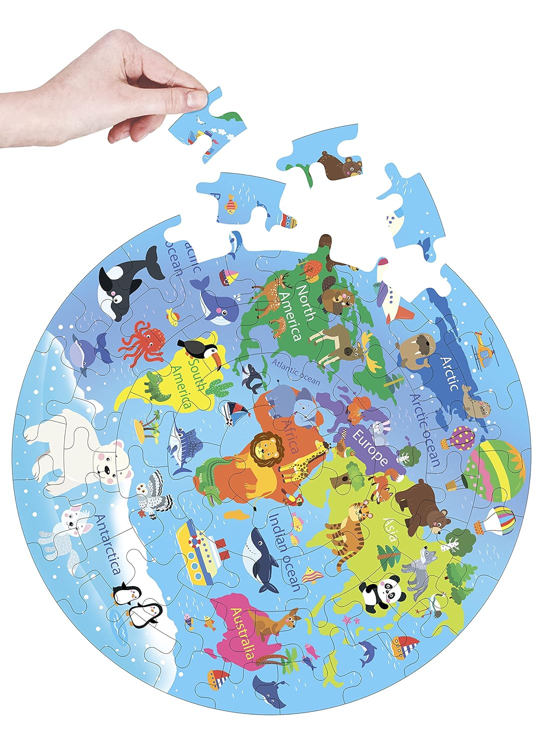 Fiddlys Creative Wooden Jigsaw Puzzle for Kids | 66 Pieces Educational Single Layer Puzzle | Fun & Learning Toy for Children Ages 3+ (World Map)